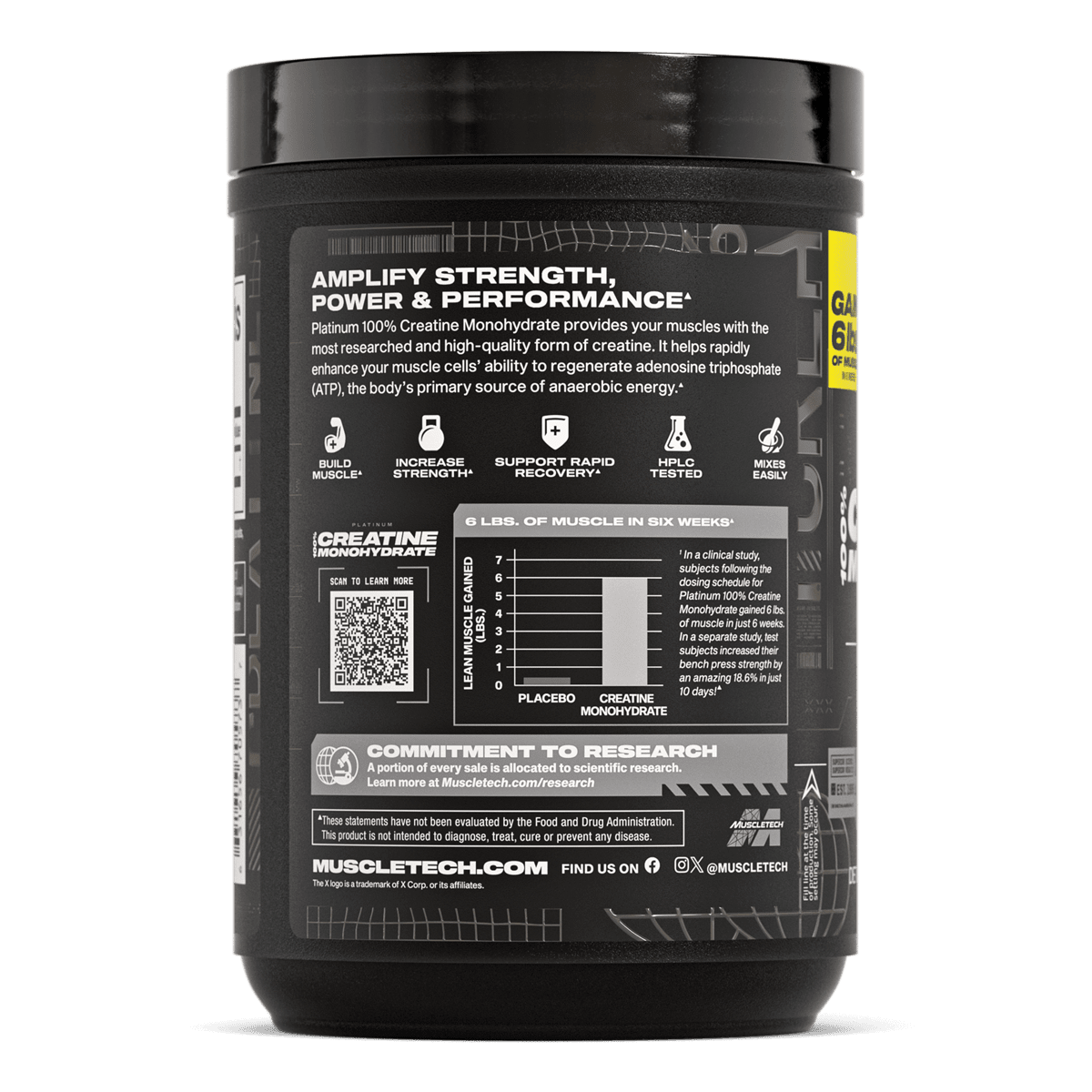 - The World’s Leading Creatine Experts: With more research funded, university trials conducted, and U.S. patents earned than any other brand, MuscleTech is the world’s creatine authority. Platinum 100% Creatine. Unflavored. 80 scoops per tub.
