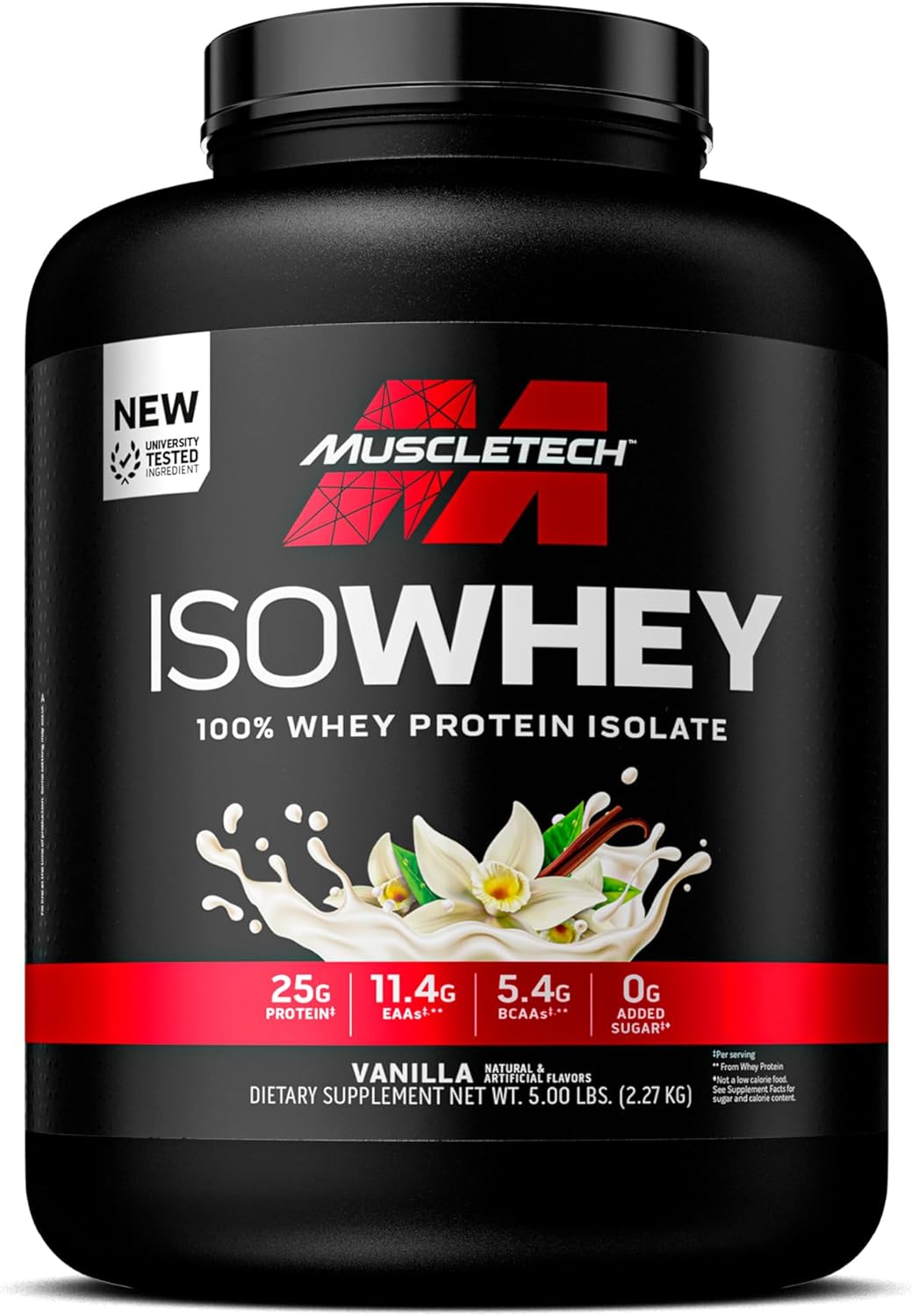 MuscleTech | IsoWhey | Whey Protein Isolate Powder| Muscle Builder for Men & Women | Post Workout Recovery Supplement | Vanilla | 5 lbs | 75 Servings